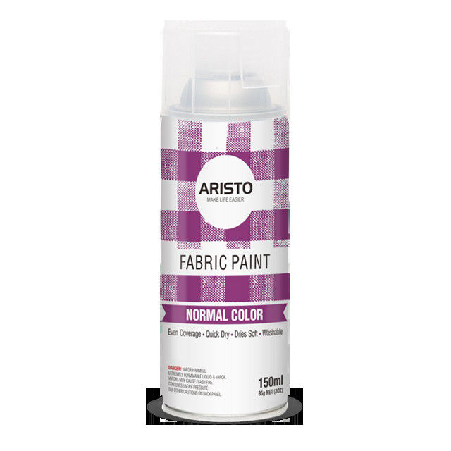Aristo Fabric Spray Paint adopts a patented, water soluble formula, it is safe and environmental. It will not crack or peel, doesn't rub off on clothing. No need to heat, safe for indoor and outdoor use. Non-toxic. Great for use on furniture, awnings, umbrellas, camping supplies, office cubicles, materials, RV's, boats, carpets, cloth car interiors and more. It works wonderful with stencils and monograms.